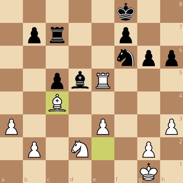 And now it’s clear why Bc4 was so bad: it blocks the rook’s path to safety. Goryachkina was forced to sacrifice the exchange with 32.Rxc6, and Vaishali won the ensuing endgame.