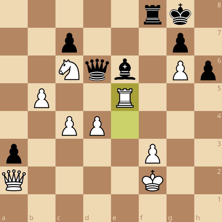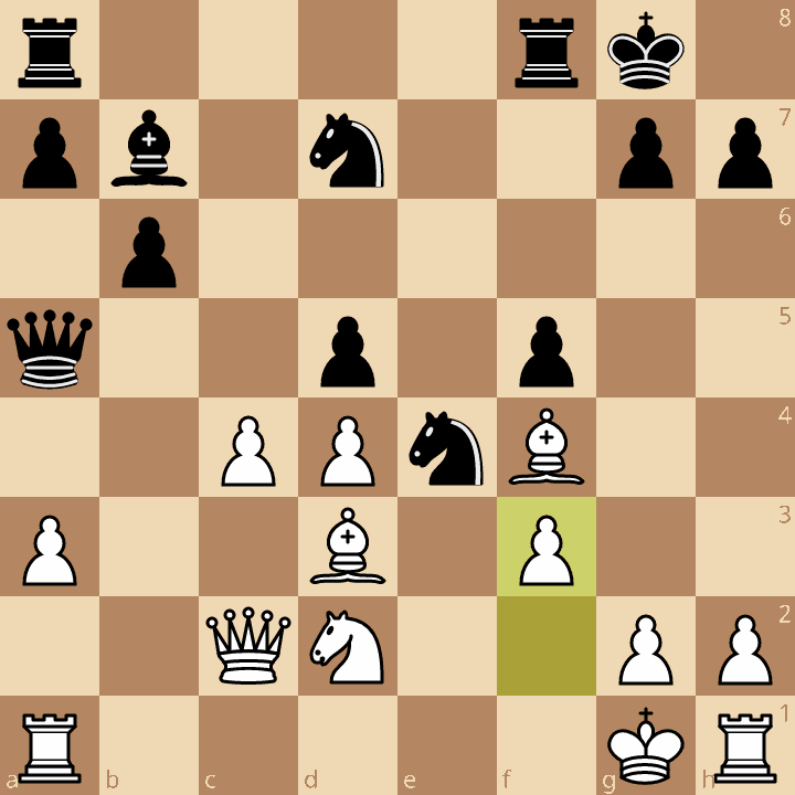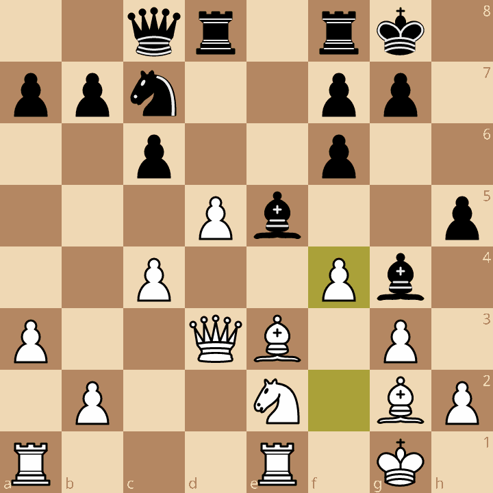 20.dxc5 Qxc5 21.Kh2 Qf2 22.Kh3 Qd4 23.Bxe4 fxe4 24.Bg3