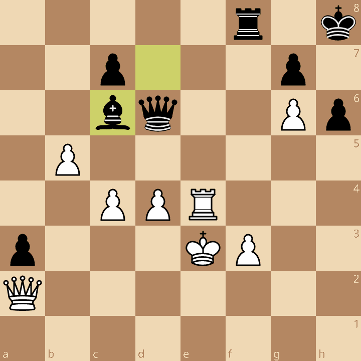 54.bxc6 Qg3 55.Qf2 Qxg6 56.d5 Qf6 57.Qe2 a2 0-1