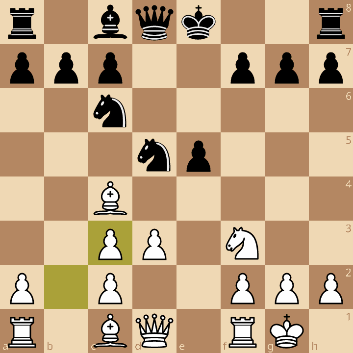 Here was an instructive opening moment in this Vienna. It took me a few minutes to think of how I would play here. White has just recaptured on c3 after Black took a knight to mess up the pawn structure. Bluebaum chose 8…Bg4 here. But how would you respond if instead he decided to take the pawn with 8…Nxc3? Leave a comment below with your move(s) and/or idea(s).