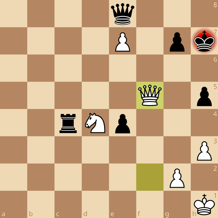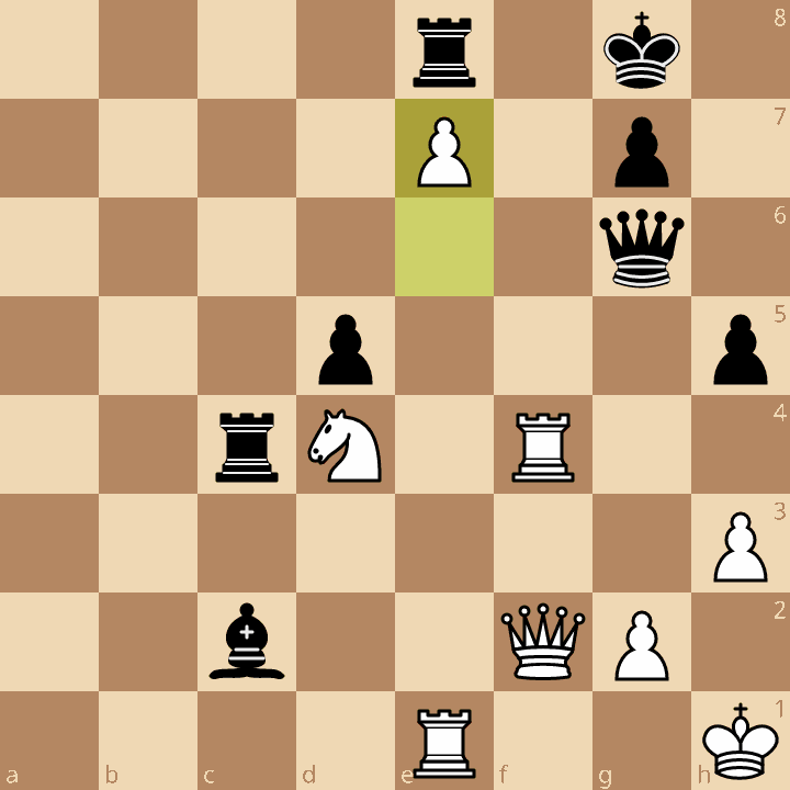 White’s pawn, owing to its status as a weakling, pushes around the enemy queen and becomes as strong as a rook on the sixth rank. Giri’s plan is to push it all the way to e7, attack f8, and make Black give up a rook for it. Pragg’s last move shows the desperation of Black’s position, as it does nothing to improve his chances, but there is hardly any way to stop Giri’s plan.