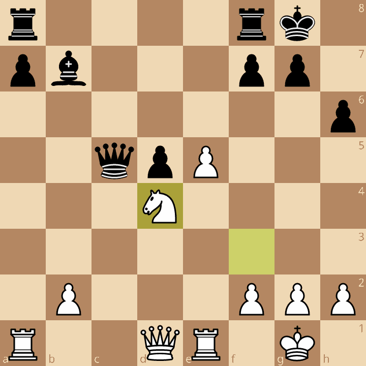 While this is a rather straightforward idea, the fact that it occurs at the top level tells us that if it’s good enough for a master, it should be good enough for a club player — pay attention. White is obviously for choice: Giri has isolated Black’s central pawn and permanently blocked it, making Pragg’s bishop on b7 a disastrously-placed piece. Additionally, Giri has traded off a redundant piece in his army for one that would otherwise be an important counter-blockader of the e5 pawn. The knight is beautifully placed on d4 as it radiates control of the e6 square, for which the e-pawn is eventually destined. In fact, in this configuration, White controls c6, e6, d6, and f6 — massive control for two short-range pieces especially considering one is a pawn. Fast forward another 13 moves: