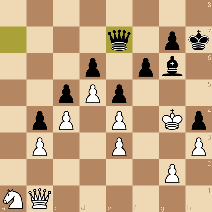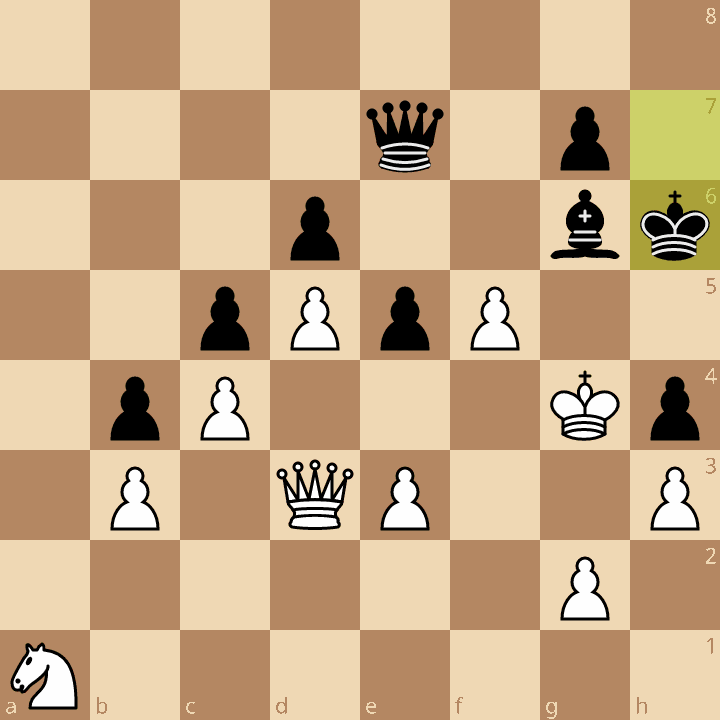 In this game Muzychuk spent most of her time with a nice advantage over Tan, whose main form of counterplay was her clock plus. The timestamp here is 26:11 Tan, 1:50 Muzychuk. And while this is a technical advantage for Black on the board, the choices are not equal nor easy to figure out without time on the buzzer.