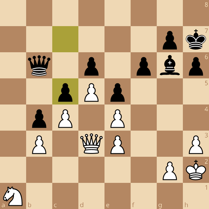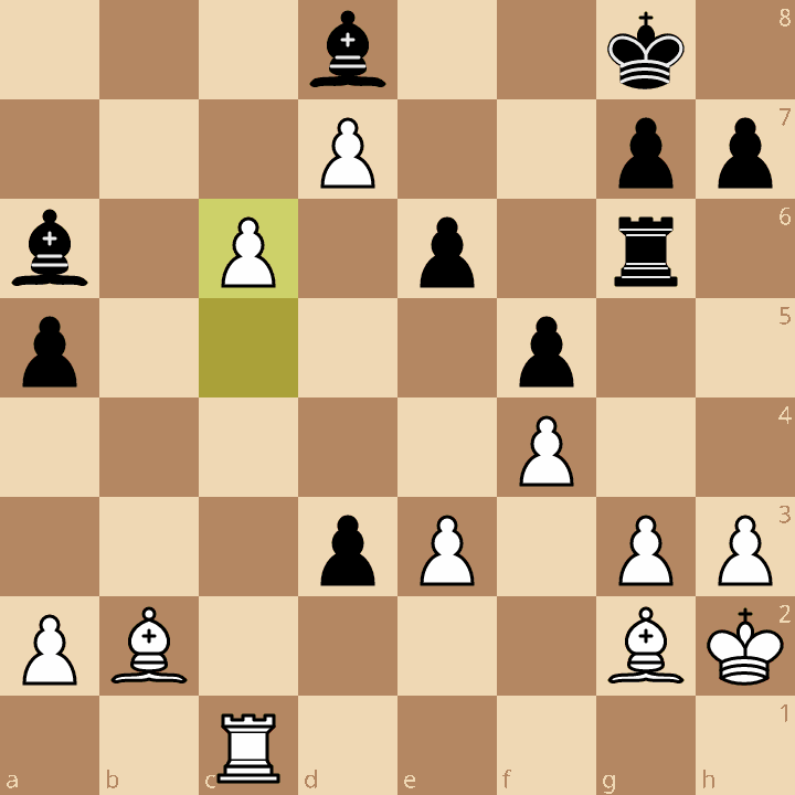 Thanks to the open diagonal, White’s bishop reigns absolutely supreme and the passed pawn on c6 is already cutting Black’s position in half.