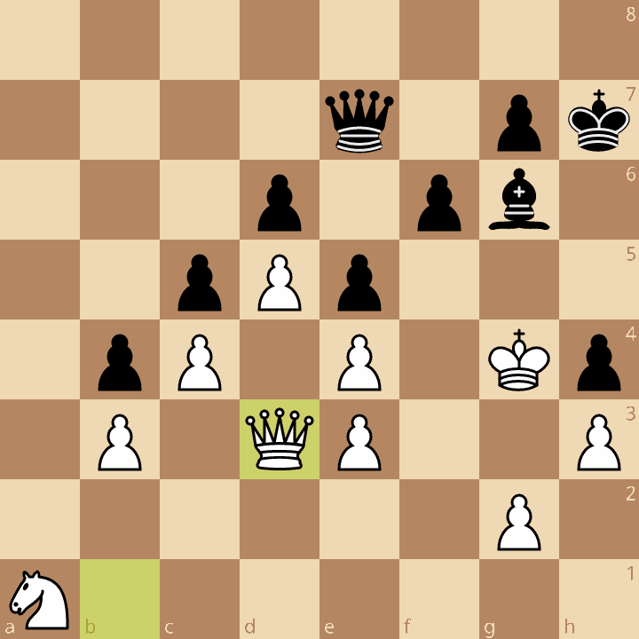 38…Qa7! hit the knight on a1 with tempo, so White now has to further discoordinate his army.