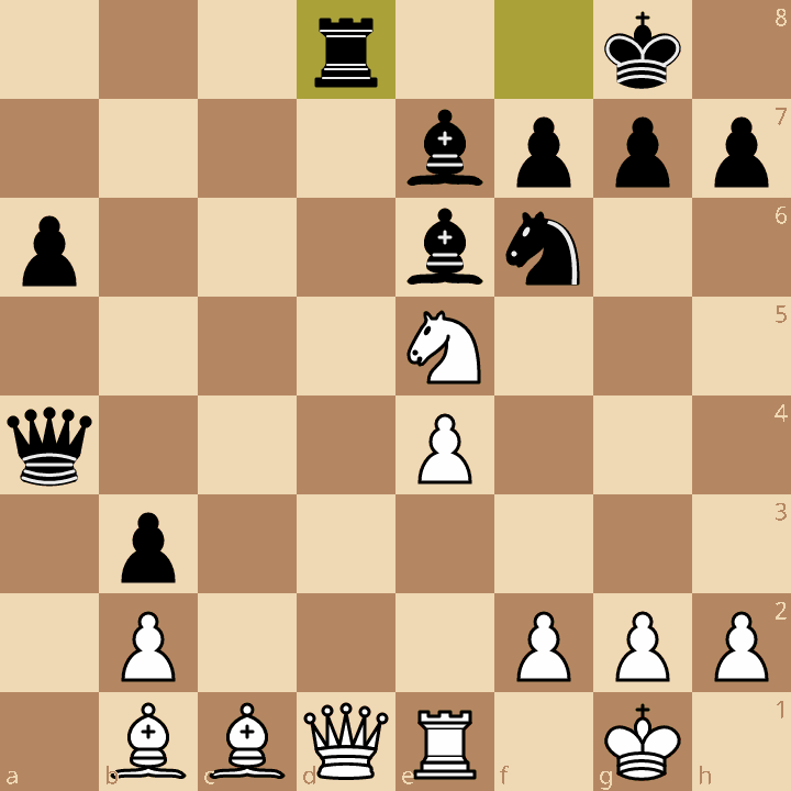 From this position, play continued as follows: 20.dxe5 dxe5 21.Nxe5 Rxc1 22.Bxc1 Rd8