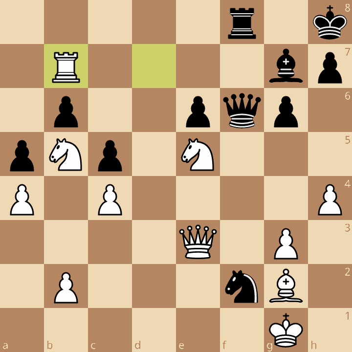 The rook moves to a protected square and threatens Black’s queen and the b7-bishop at the same time.